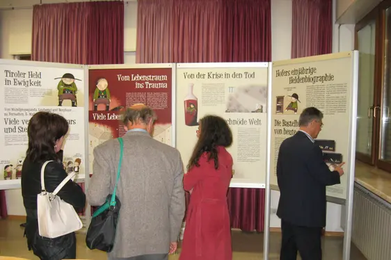 Der Grafiker Jochen Gasser und der Historiker Norbert Parschalk, Autoren des Bandes „Andreas Hofer – Eine illustrierte Geschichte“, haben die Ausstellung gestaltet.
